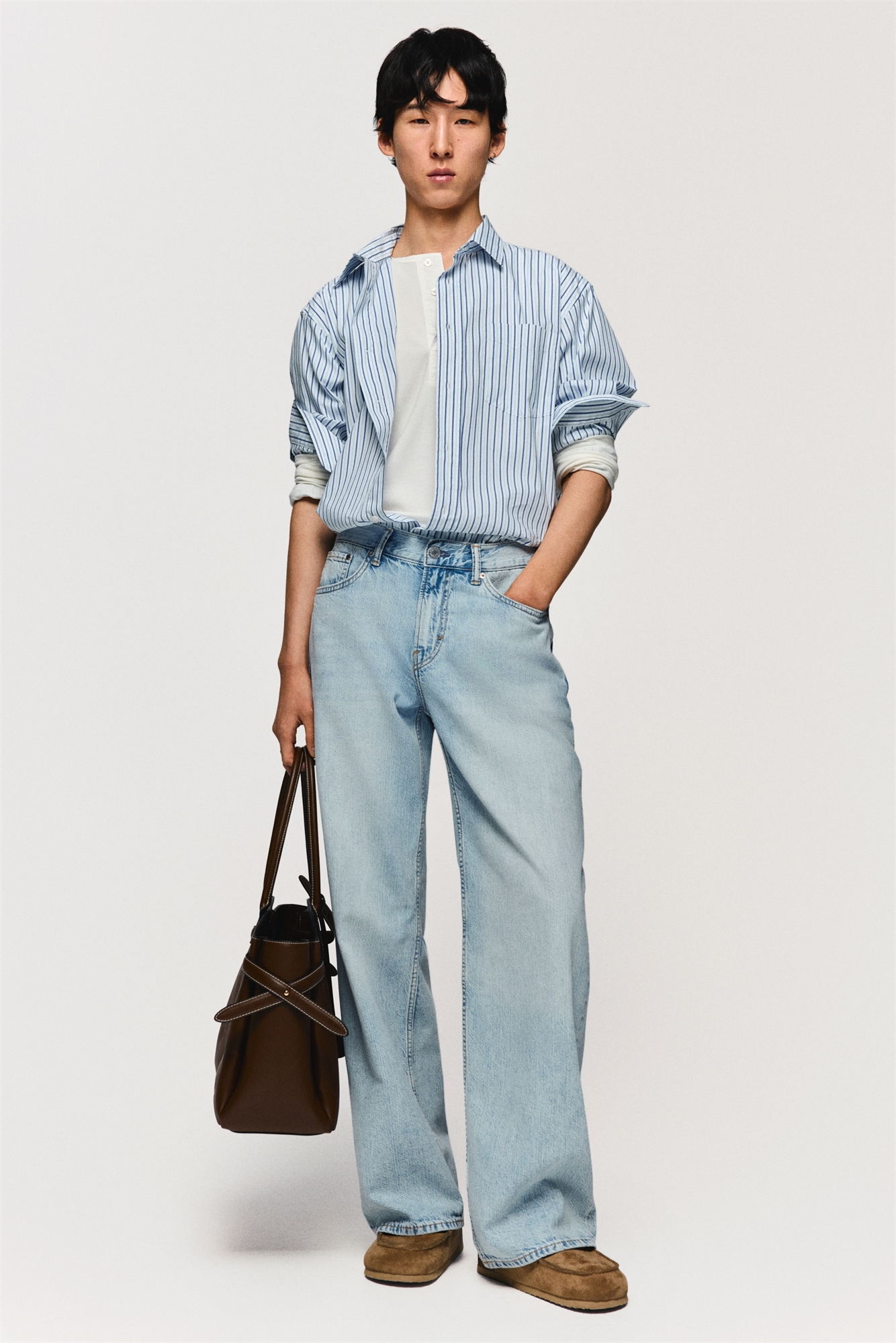 Джинсы с 5 карманами из мягкого, легкого хлопкового денима с прямыми штанинами и свободным кроем от сиденья до подола, с опущенной промежностью и дополнительным пространством по всей ноге. Заниженная талия и ширинка на молнии. Все, что вам нужно, чтобы покорить весь джинсовый образ.