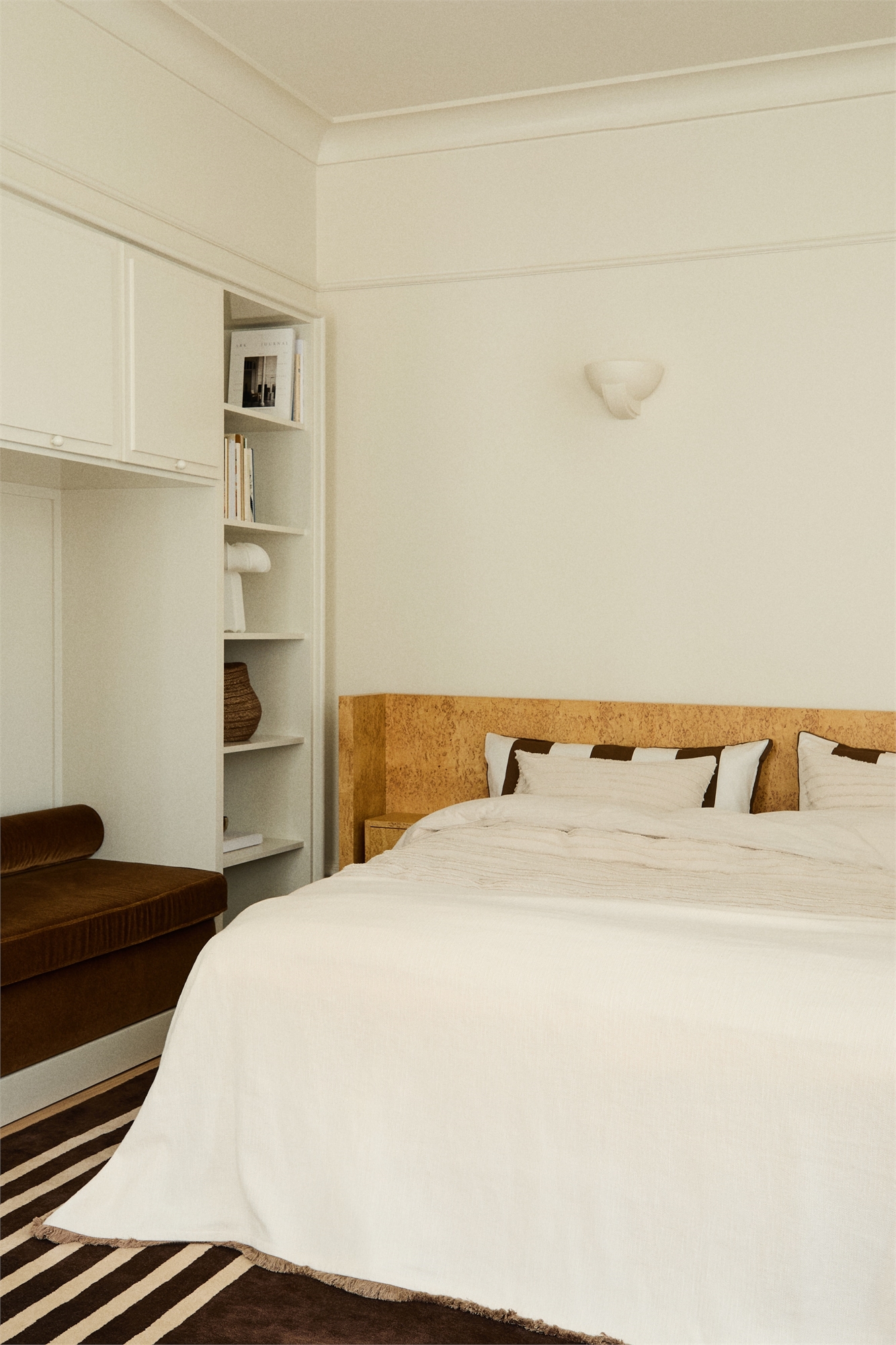 Комплект постельного белья двуспальный/king-size из мягкого хлопка с вытканным узором. Полосы с ворсом придают глубину и детализацию вашей спальне, сохраняя при этом простой и изысканный вид. Пододеяльник застегивается снизу на потайные металлические кнопки. Две наволочки с отверстием-конвертом.