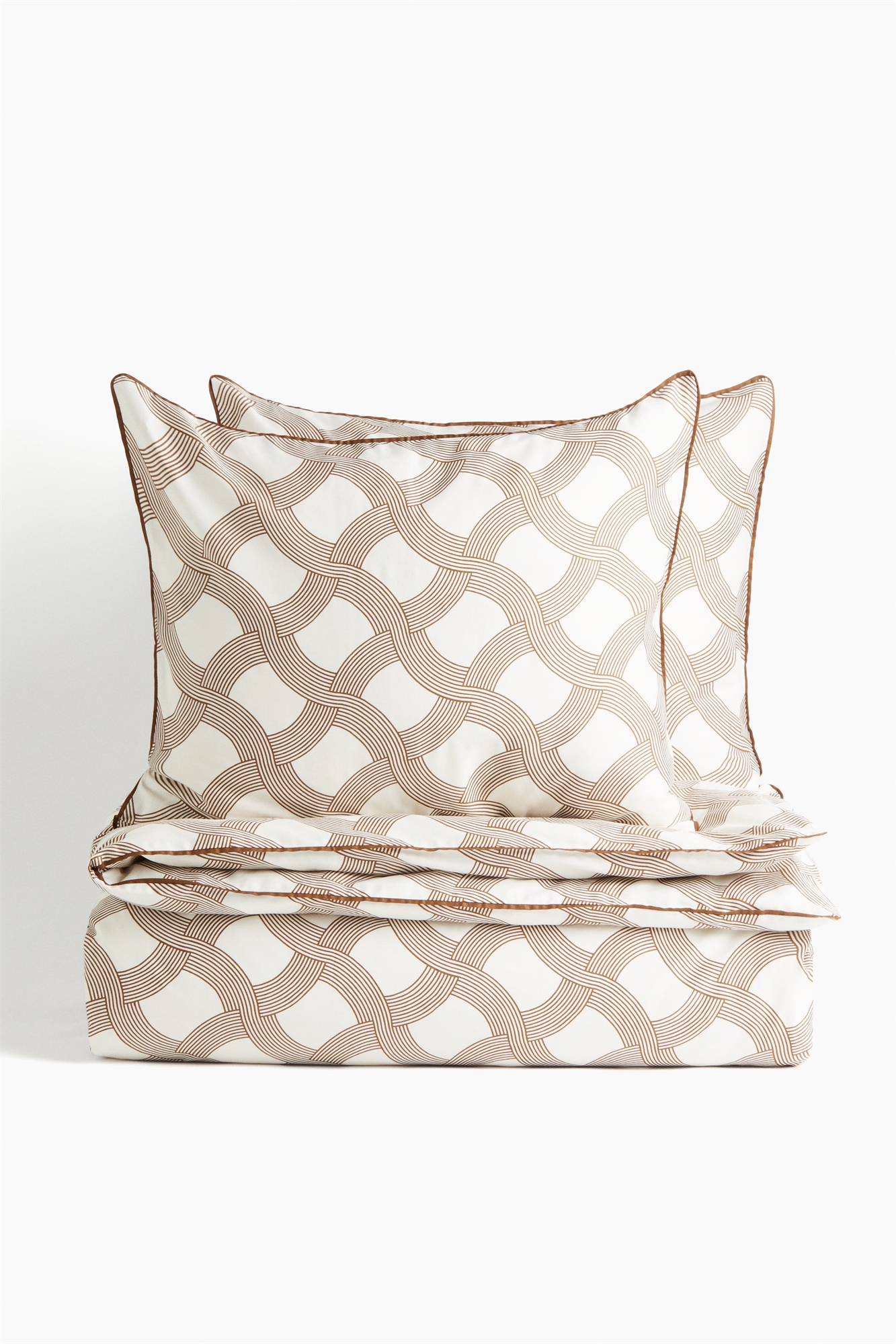 Двуспальный комплект постельного белья из хлопкового сатина с количеством нитей 210 с рисунком на всю поверхность. Окантовка по краям наволочек и по верху пододеяльника. Пододеяльник застегивается снизу на пластиковые пуговицы, а наволочки имеют классическое отверстие-конверт. Хлопковый сатин обеспечивает более комфортный сон и обладает едва заметным блеском, который придает роскошный вид и ощущение от постельного белья.