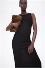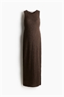 Приталенное платье длиной до щиколоток из фактурного джерси без рукавов, с круглым вырезом и прямым покроем с разрезом с одной стороны.