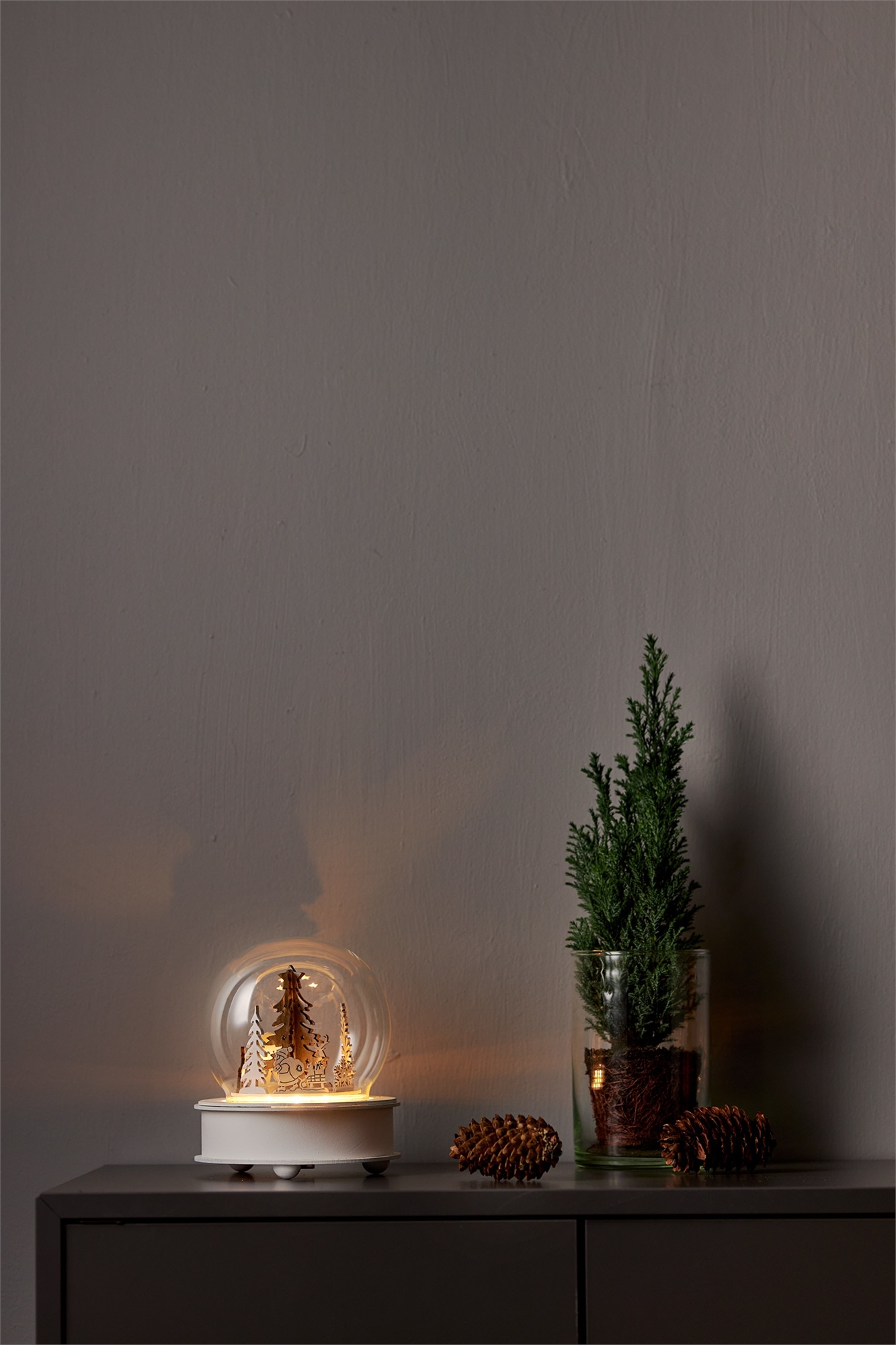 Эта детализированная музыкальная шкатулка со стеклянным шаром имеет сцену из дерева, вырезанную лазером, которая светится и волшебно вращается при включении. При заводке играет красивая мелодия. Прекрасное адвентское украшение, создающее атмосферу в окне или на серванте. Работает от батареек (2 батарейки типа АА, не входят в комплект). Музыкальная шкатулка высотой 17 см имеет диаметр 14 см.