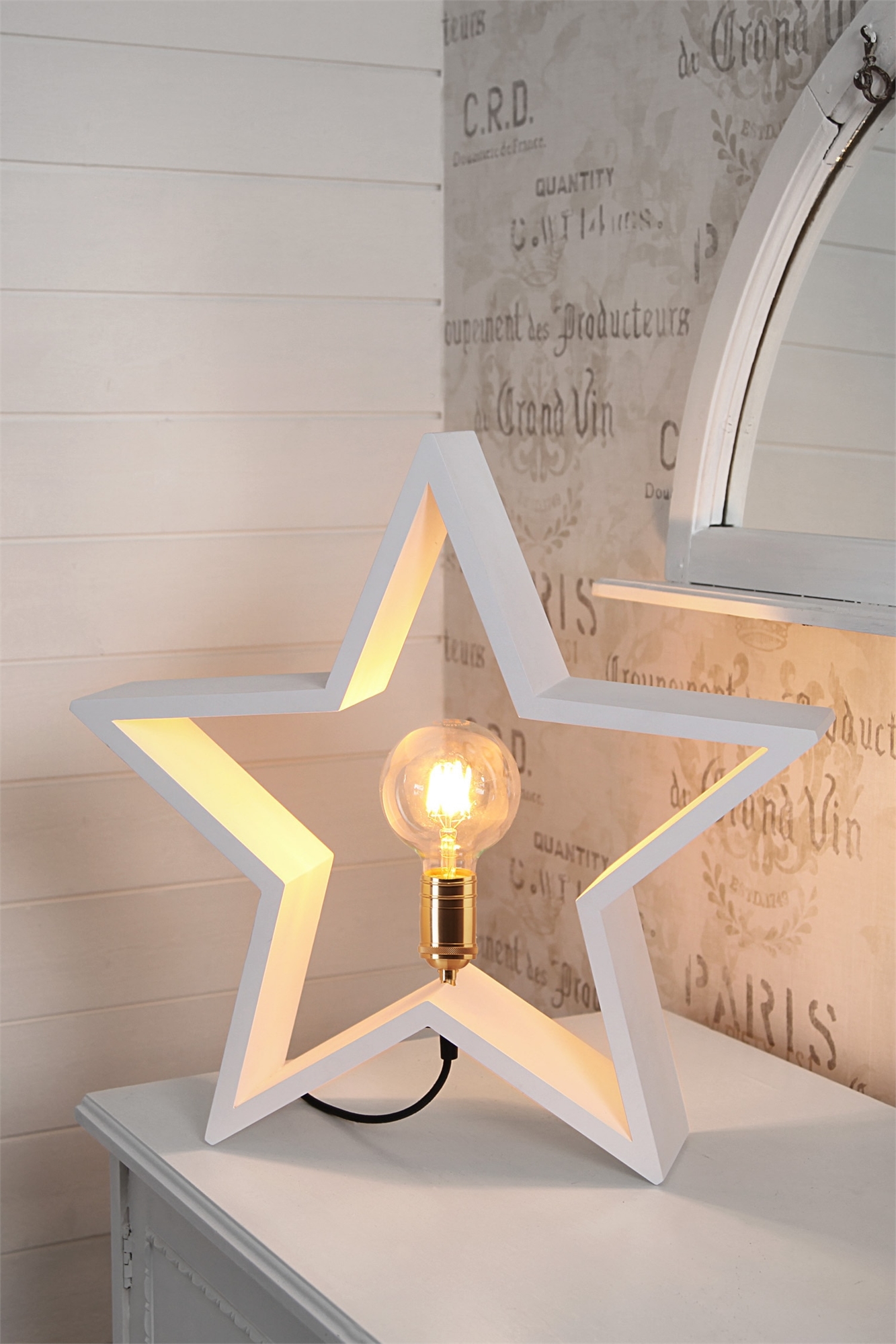 Деревянная звезда с цоколем E27. Лампочка приобретается отдельно. Симпатичное украшение для стола и окна. Размер: высота 48 см, ширина 50 см, глубина 10 см. Длина соединительного кабеля: 180 см.