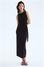 Приталенное платье длиной до колен из джерси-стрейч, без рукавов и с круглым вырезом. Узел на талии с одной стороны создает эффект драпировки.