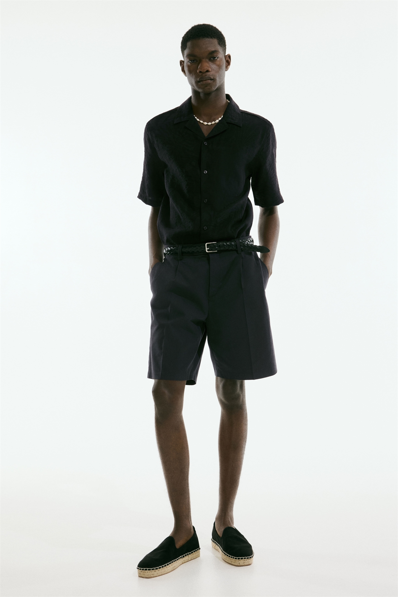 Рубашка с короткими рукавами из воздушного жаккардового переплетения с курортным воротником, французским передом и прямым покроем. Регулярный крой для комфортной носки и классического силуэта.