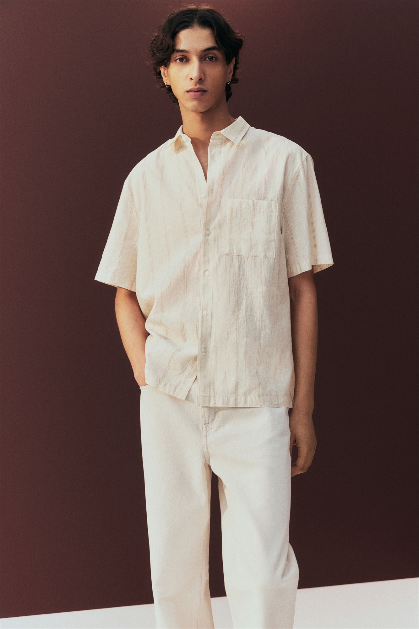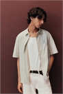 Рубашка с короткими рукавами из мягкой хлопковой смеси с простроченными полосками. Отложной воротник, французская застежка спереди и ярмо сзади. Открытый нагрудный карман и прямой подол с разрезом с каждой стороны. Регулярный крой для комфортной носки и классического силуэта.