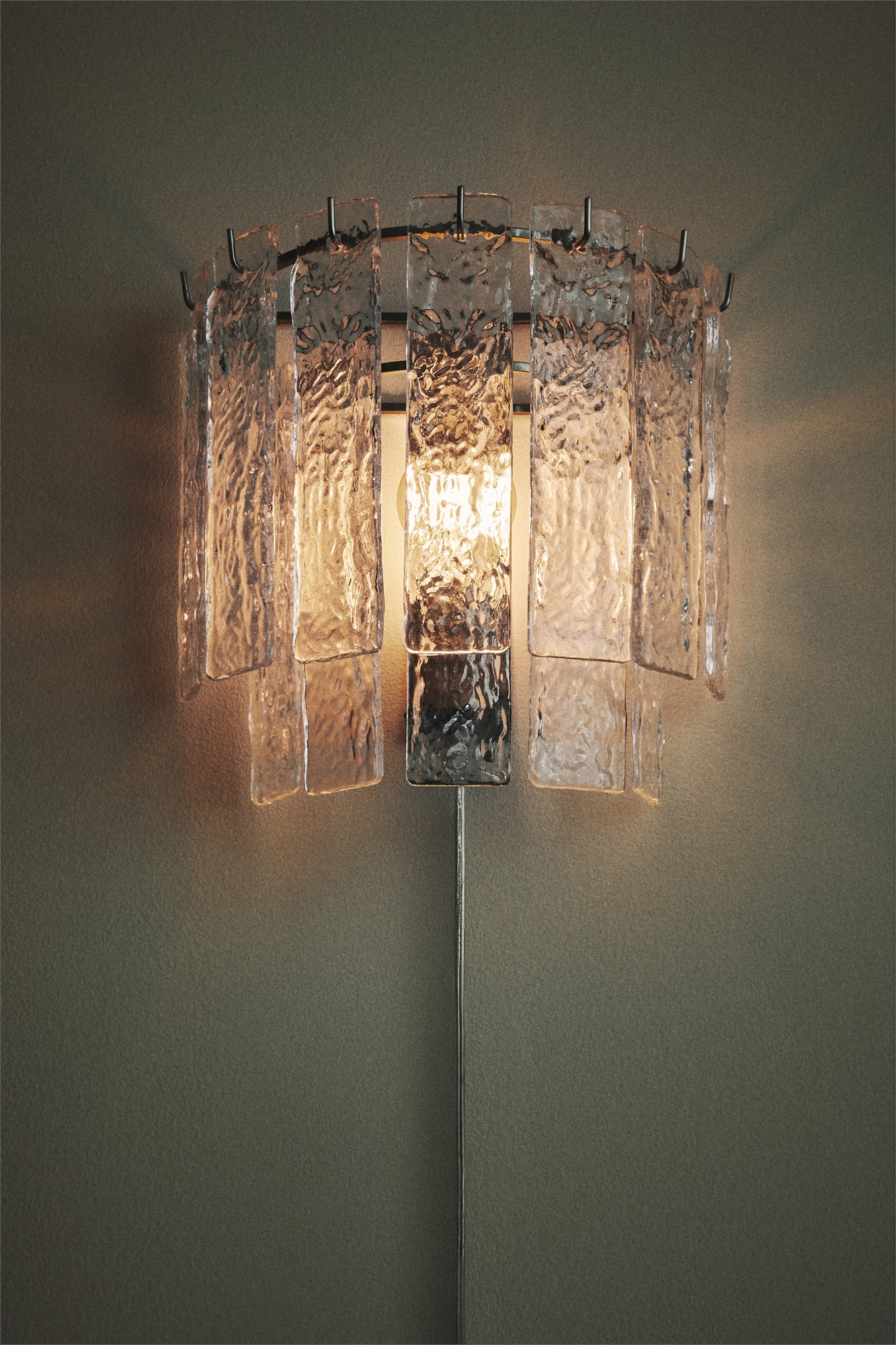 Настенный светильник из металла с двумя ярусами, украшенными плоскими прямоугольными стеклянными призмами с кованым рисунком, которые прекрасно рассеивают свет. Этот потрясающий предмет придаст элегантность и изысканность любому помещению. Патрон E27. Лампочка в комплект не входит. Максимальная мощность 15 Вт.