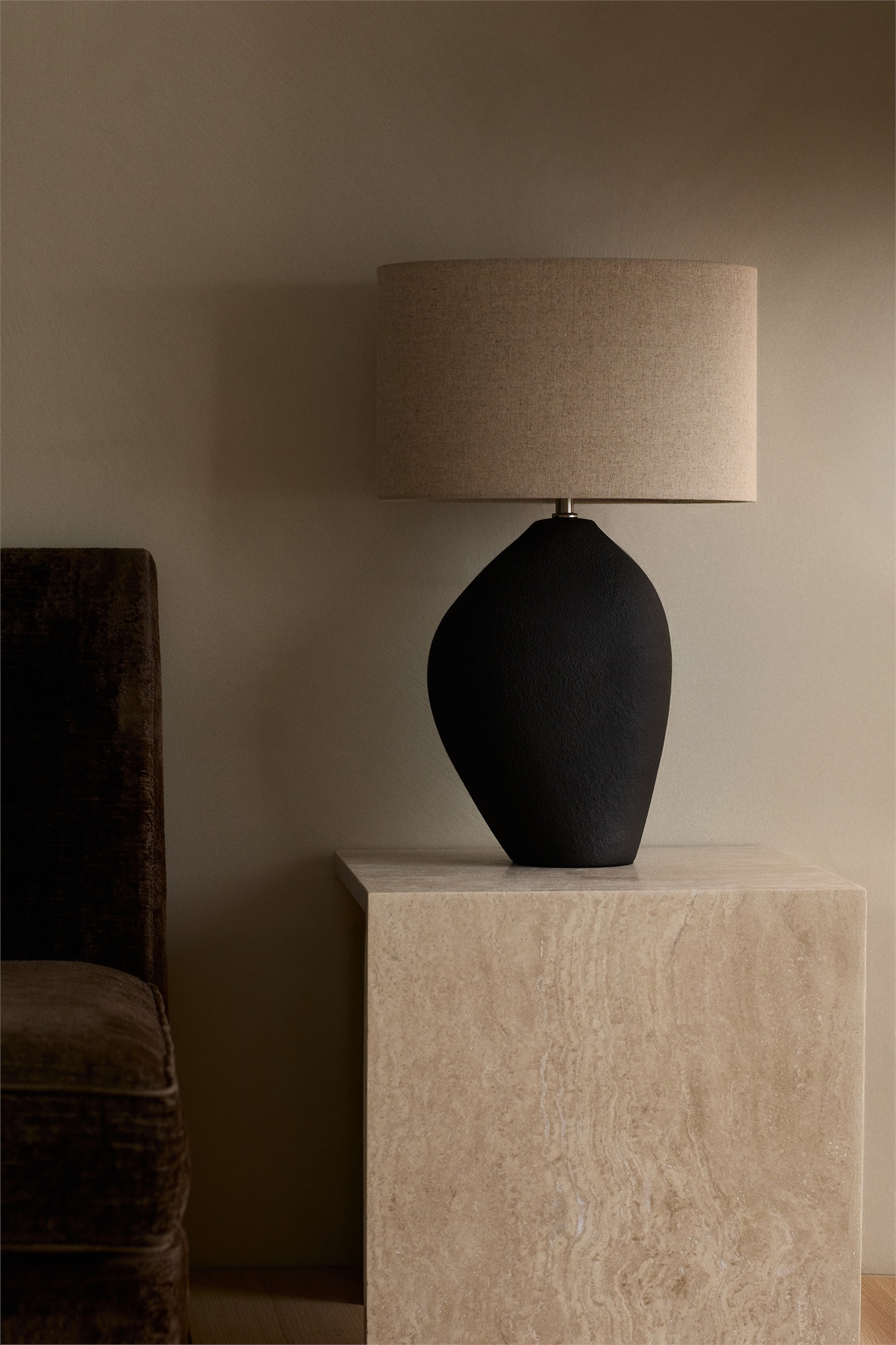Настольная лампа с асимметричным, слегка фактурным керамическим основанием и овальным абажуром из тканого материала, напоминающего лен. Этот современный предмет сочетает в себе контрастные структуры с мягкими, органическими формами и гармонично вписывается в большинство стилей интерьера. Патрон E27. Лампочка в комплект не входит. Максимальная мощность 15 Вт.