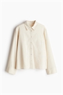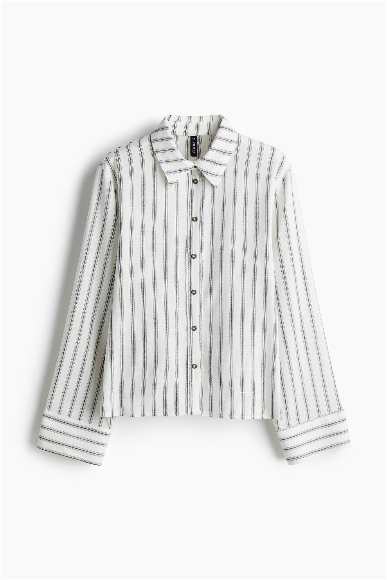 Рубашка воздушного плетения из смеси вискозы и льна с воротником, застежкой на пуговицы спереди и длинными рукавами с разрезом и пуговицей на манжетах.