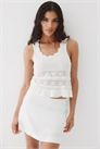 Облегающие мини-юбки из смеси льна и вискозы с воздушным плетением. Скрытая застежка-молния и застежка-крючок с одной стороны. На подкладке.