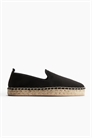Эспадрильи из холста с плетеной джутовой отделкой вокруг подошвы. Заплатка на пятке с мягкой подкладкой и подошва с узором.