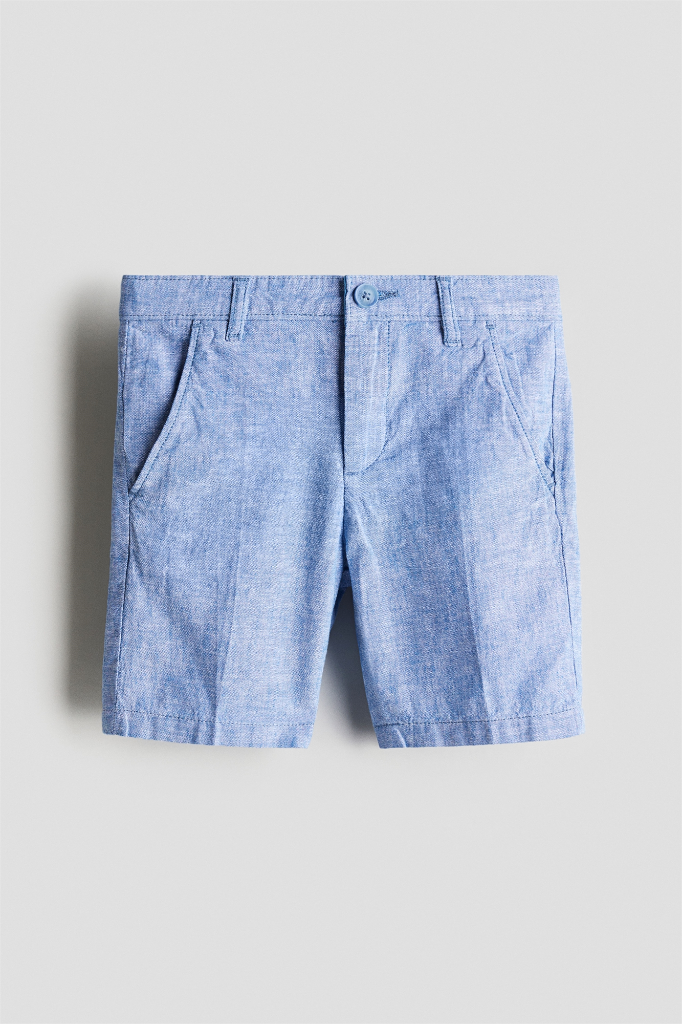Шорты с мягким плетением из смеси льна и хлопка. Регулируемая резинка на талии и ширинка на молнии с пуговицей. Диагональные боковые карманы и декоративный задний карман.