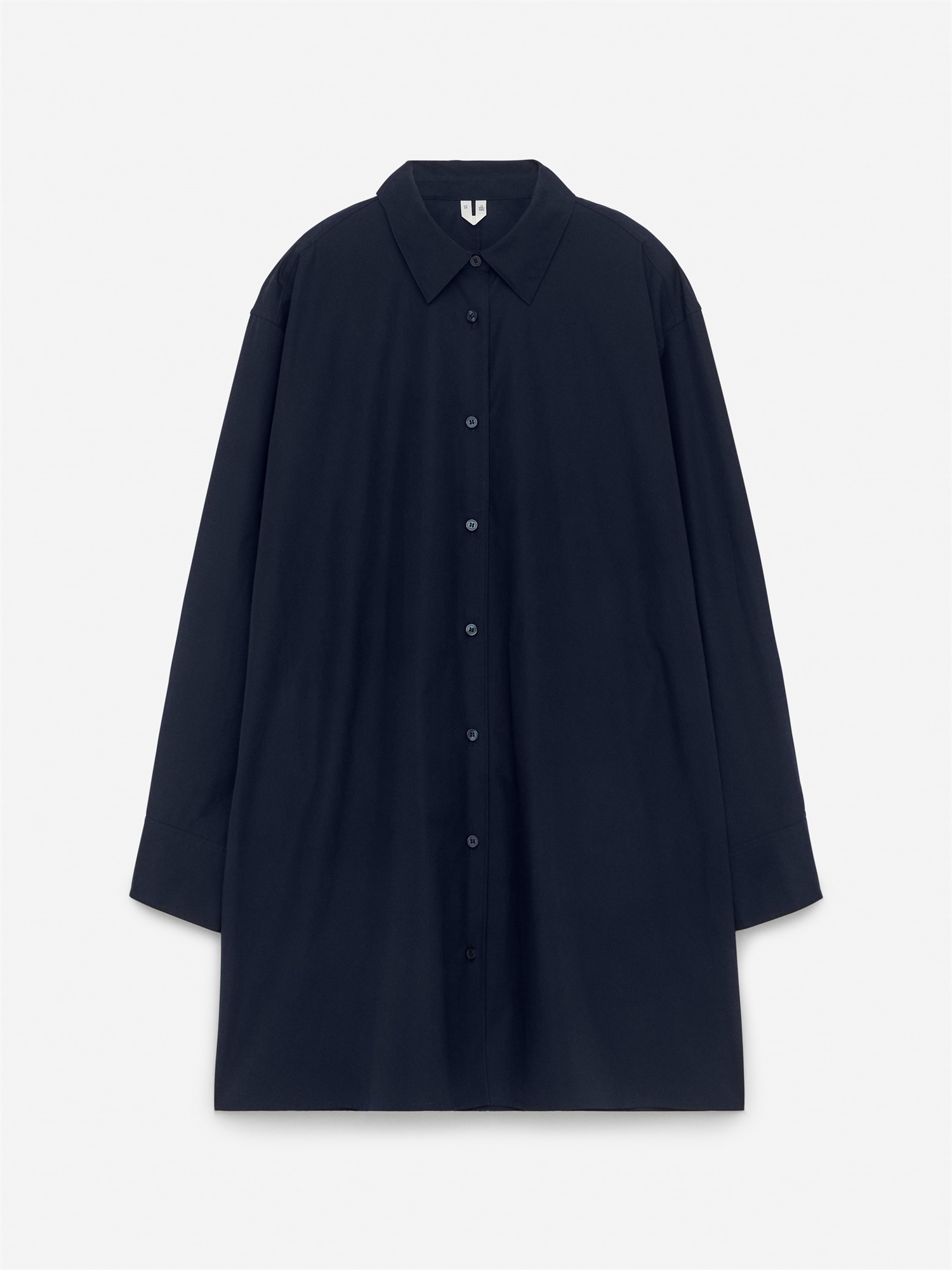 Короткое платье-рубашка из хлопка с воздушным поплиновым переплетением. Застежка на пуговицы и разрезы по бокам. Обычный крой.