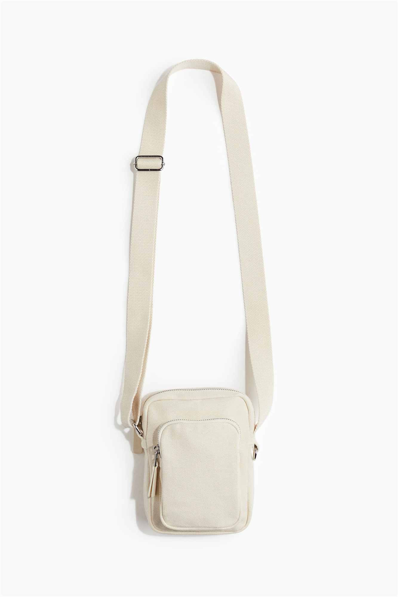 Сумка-кроссбоди из хлопкового холста с застежкой на молнию сверху и регулируемым плечевым ремнем. Одно внешнее отделение на молнии, одно открытое внешнее отделение и одно открытое внутреннее отделение. На подкладке.