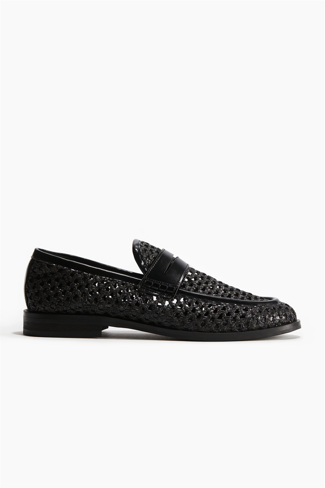 Лоферы из сетчатой ткани с покрытием, застежкой на копейки и окантовкой спереди. Резиновая подошва с узором.