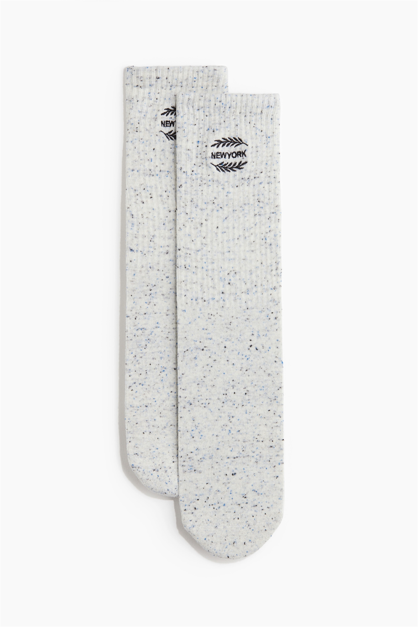 Носки из мягкой хлопковой смеси тонкой вязки с начесом. Длинный ребристый голенище с вышитой деталью.