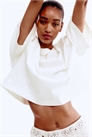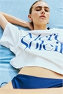 Укороченная футболка из хлопкового джерси. Свободный крой Loose fit с горловиной в рубчик, спущенные плечи и прямой подол.