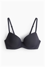 Бюстгальтер пуш-ап из микрофибры с регулируемыми бретелями и мягкими чашечками с заниженной талией для увеличения объема бюста и более глубокого декольте. Застежка на крючки и глазки сзади.