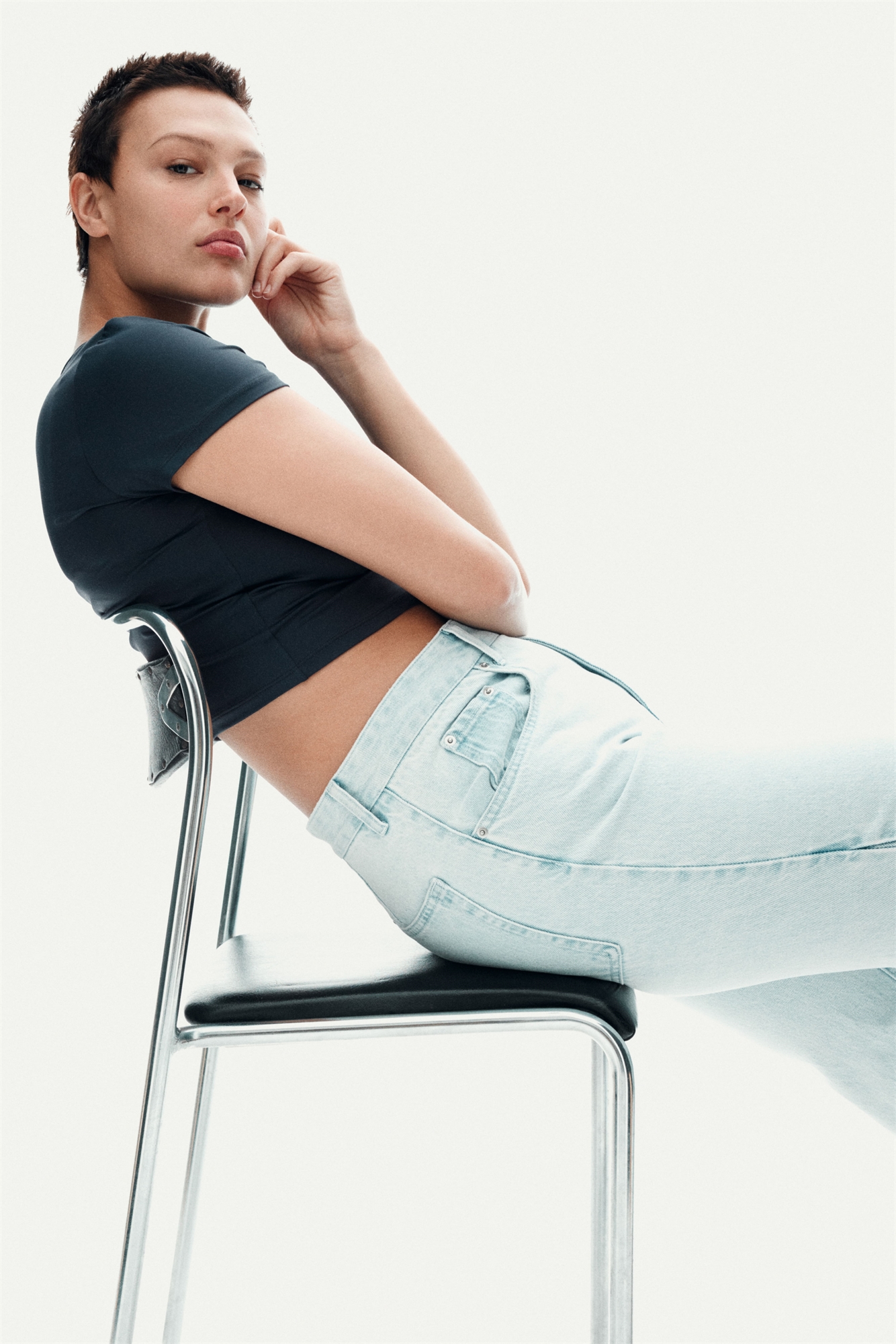 Обрезанная приталенная футболка из мягкой микрофибры с горловиной.