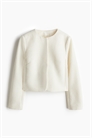 Короткий жакет из тканого материала с круглым вырезом, застежкой спереди, нагрудными вытачками и декоративным разрезом на манжетах. На подкладке.