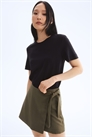 Короткие шорты из тканого материала из смеси льна. Высокая талия, потайная застежка-молния с одной стороны, вытачки сзади и передняя часть с завязками с одной стороны. На подкладке.