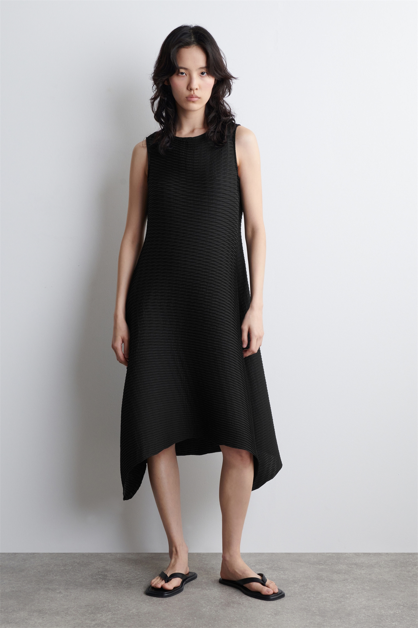 Это поразительное платье, дебютировавшее на подиуме весна-лето 2025, имеет скульптурный силуэт, который ниспадает плавными движениями. Оно сшито из структурированной, пружинистой ткани со всеми волнистыми складками, которые создают интерес к поверхности, а вырез и изогнутый подол вырезаны лазером для точной отделки. Regular fitRecycled polyester - это полиэстер, изготовленный из ПЭТ-бутылок или текстильных отходов, вышедших из употребления. ПЭТ-бутылки или текстильные отходы подвергаются механической переработке и перерабатываются в новую пряжу. Материал: 100% переработанный полиэстер. Без учета отделки / Машинная стирка Длина по спинке для размера EU 36 составляет 102 см / Модель носит размер EU 36