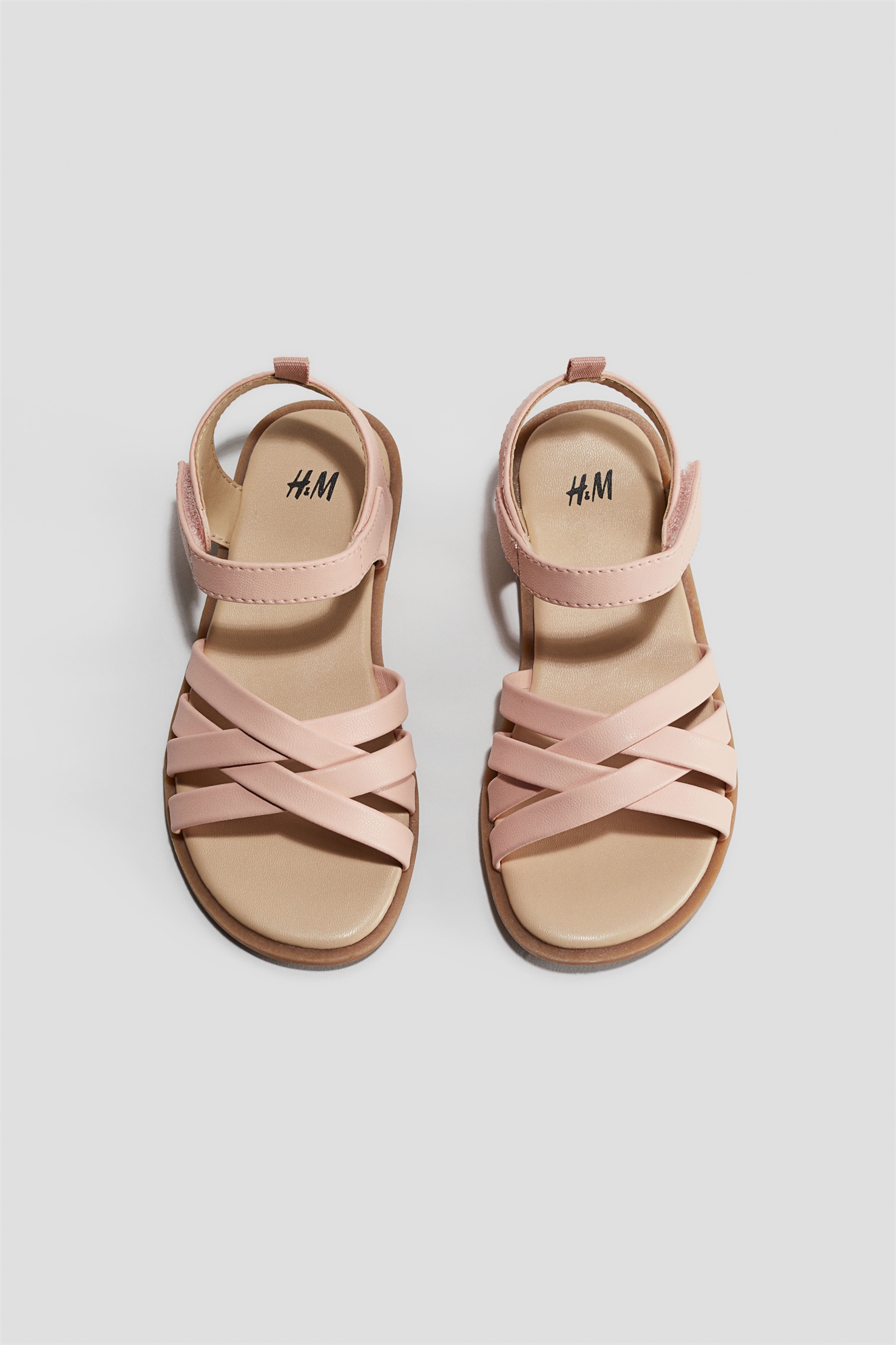 Сандалии с перекрещивающимися ремешками на ноге и регулируемой застежкой-крючком вокруг лодыжки.