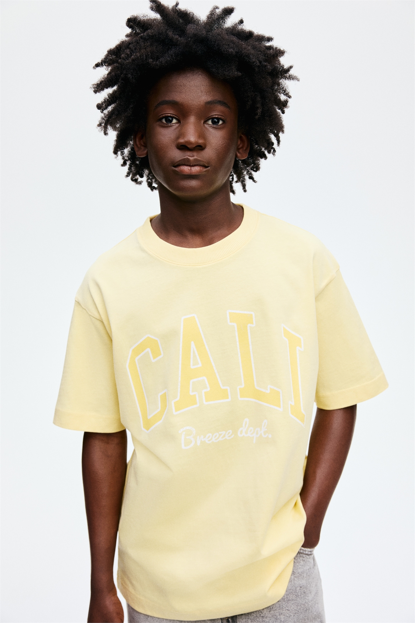 Свободная футболка из мягкого хлопкового джерси с набивным рисунком, круглым вырезом с ребристой отделкой и спущенными плечами.