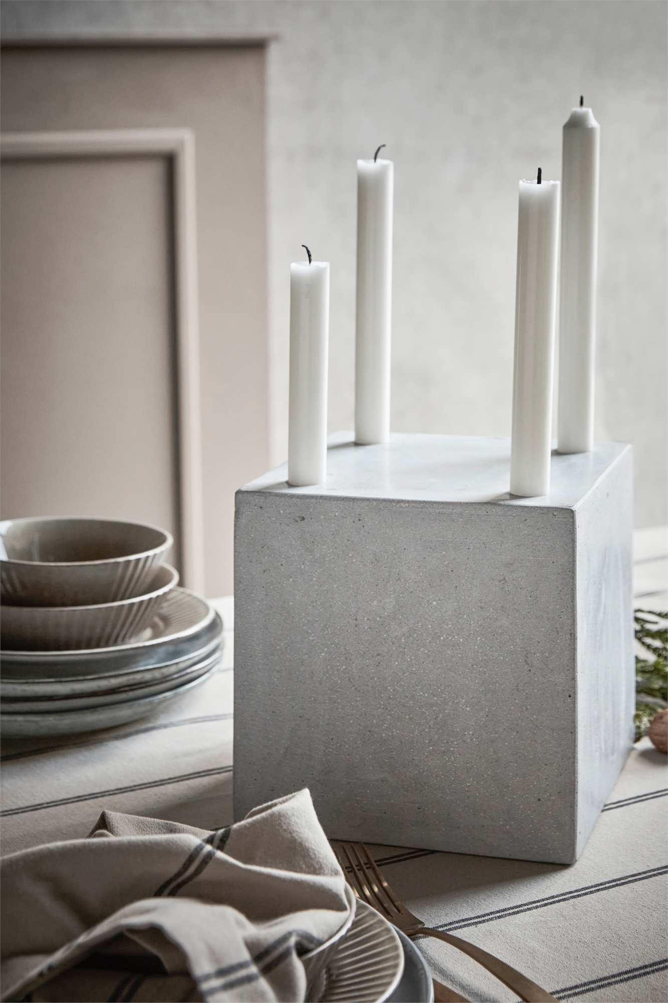 Придайте своим рождественским украшениям минималистичный и индустриальный вид с помощью этого подсвечника от House Doctor. Кубический дизайн в нестареющем сером цвете выполнен из полистоуна, что придает ему естественную выразительность и цементный вид. С одной стороны подсвечника предусмотрено место для 4 свечей, а другая сторона идеально подходит для 4 светодиодных свечей или чайных ламп. Подсвечник подчеркивает простой вид, но его также можно украсить металлическими гирляндами, веточками и другими украшениями для индивидуального выражения на обеденном или журнальном столе. Вы будете избалованы выбором. 20x 20x 20 см