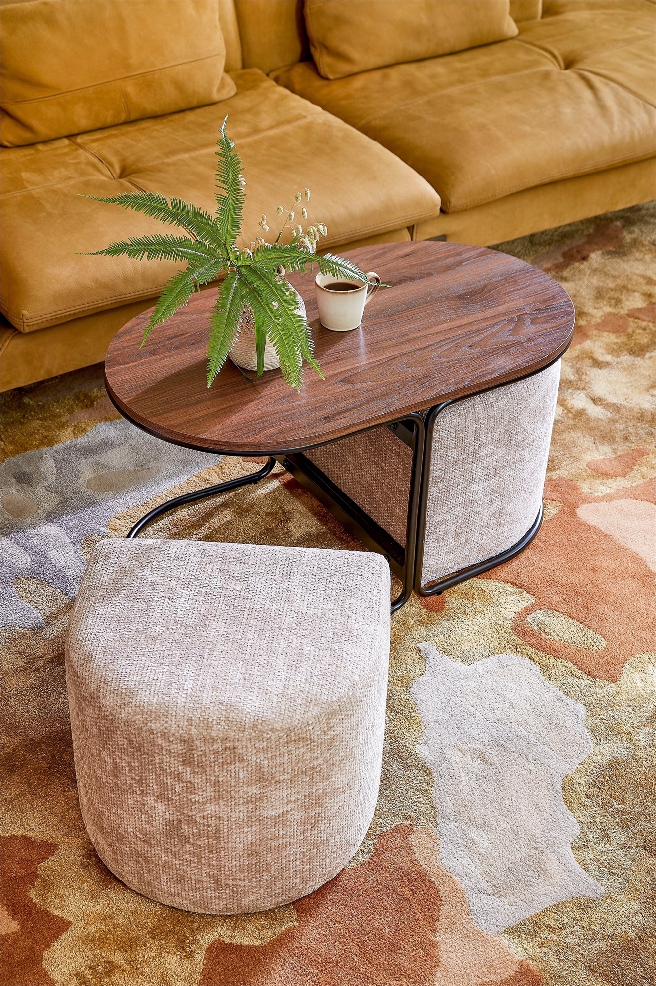 С помощью кофейного столика с декоративными табуретами от Mica Decorations вы сможете легко и быстро создать стильную дополнительную зону отдыха. Ушли гости? Тогда вы можете использовать комбинацию в качестве приставного столика или подставки для ног. А если вы хотите сэкономить место, просто задвиньте декоративные табуреты под приставной столик. Идеально! Это делает комплект идеальным решением для небольших помещений. Благодаря цветовой отделке в светло-серых, темно-коричневых и черных тонах этот предмет мебели идеально подойдет для дома любого стиля. Размеры: L79 x W45 x H41 см.