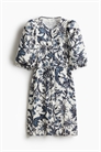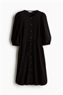 Платье длиной до колена из тканого материала с круглым вырезом, застежкой на пуговицы спереди и съемным поясом-спагетти на талии. Рукава длиной до локтя с эластичными манжетами. Без подкладки.