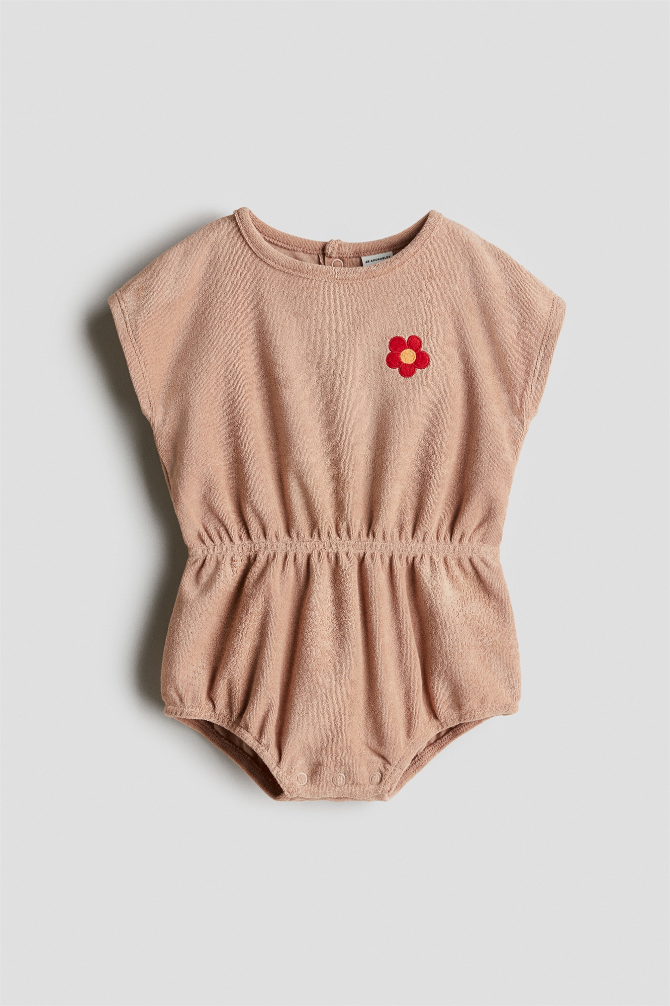 H&M Adorables. Короткий ромпер из мягкой махровой ткани с круглым вырезом, застежкой на пуговицы сзади и короткими рукавами-шапочками. Мягкая эластичная резинка на талии и вокруг ног. Застежки внизу для удобства переодевания. Коллекция H&M Adorables - это подборка удобных и качественных вещей, которые не подвластны времени.