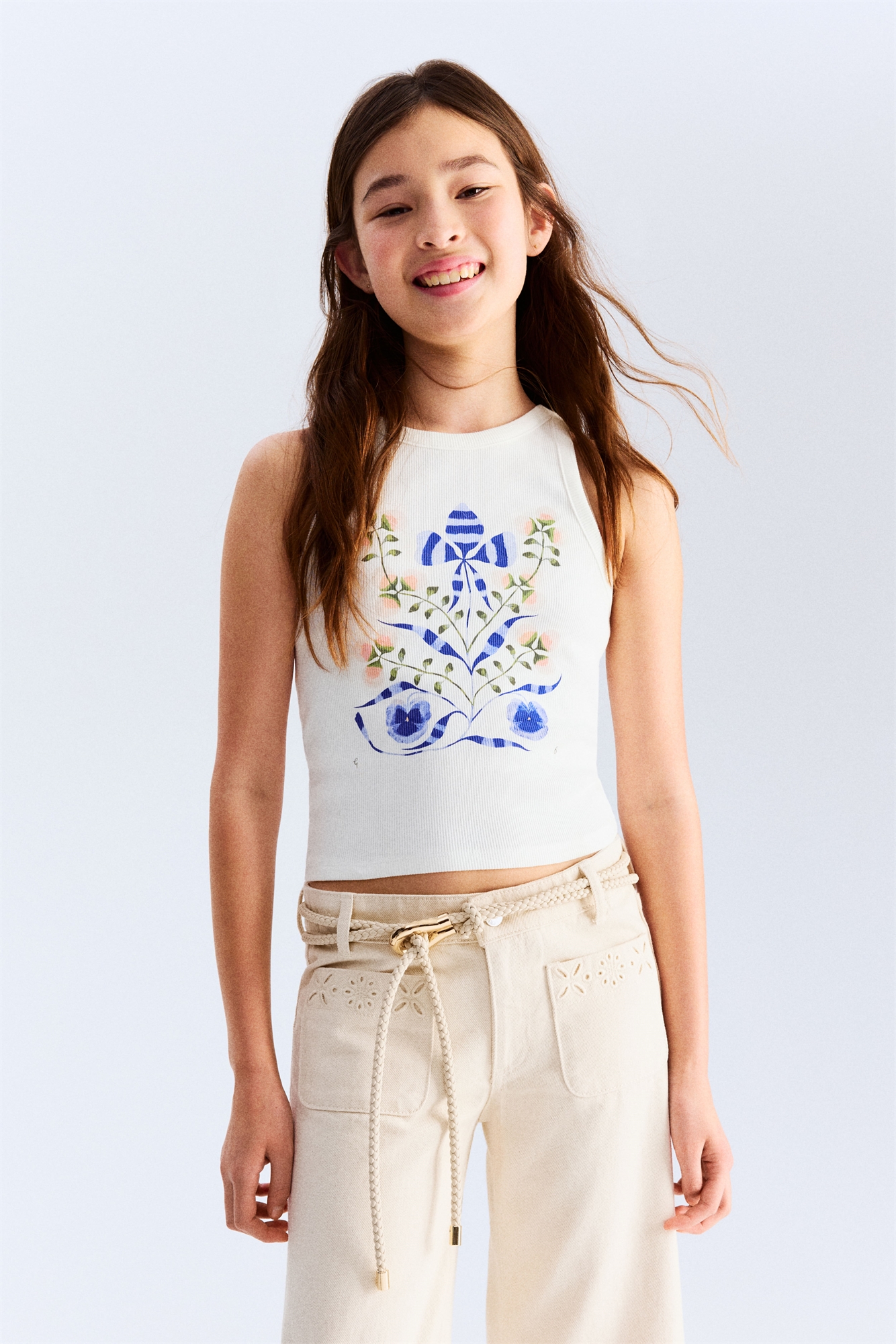 H&M x Georgia Beaumont. Жилет-топ из ребристого хлопкового джерси с цветочным принтом спереди. Отделка по вырезу горловины и проймам.