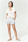 Шорты из мягкого хлопкового полотна с эластичным поясом, незаметными боковыми карманами и разрезом по бокам на подоле.