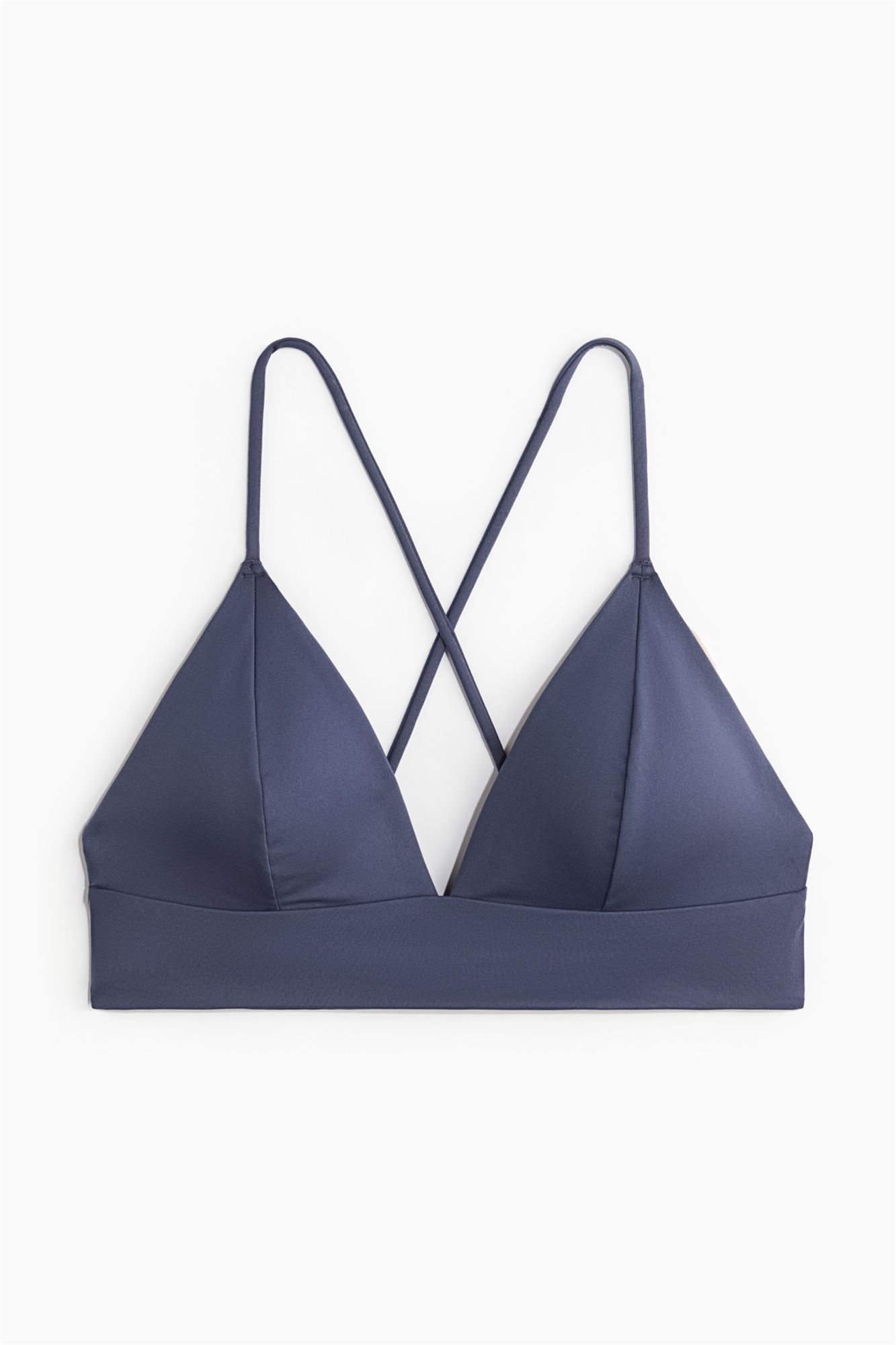 Бикини на подкладке, без проводов, с узкими регулируемыми бретелями, перекрещивающимися сзади. Треугольные чашечки со съемными вкладышами, которые придают форму бюсту и обеспечивают хорошую поддержку. Без застежек.
