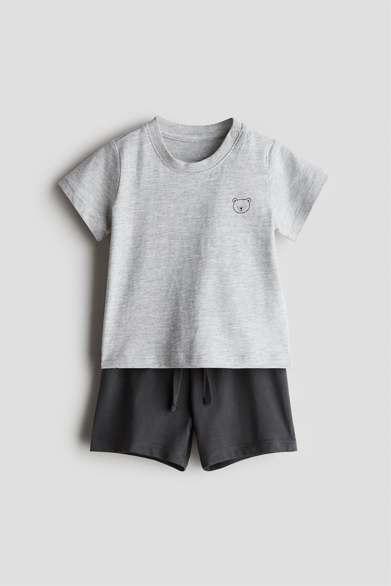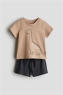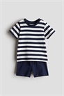 Комплект из футболки и шорт из мягкого хлопкового джерси. Футболка с круглым вырезом и шорты с эластичным утягивающим поясом.
