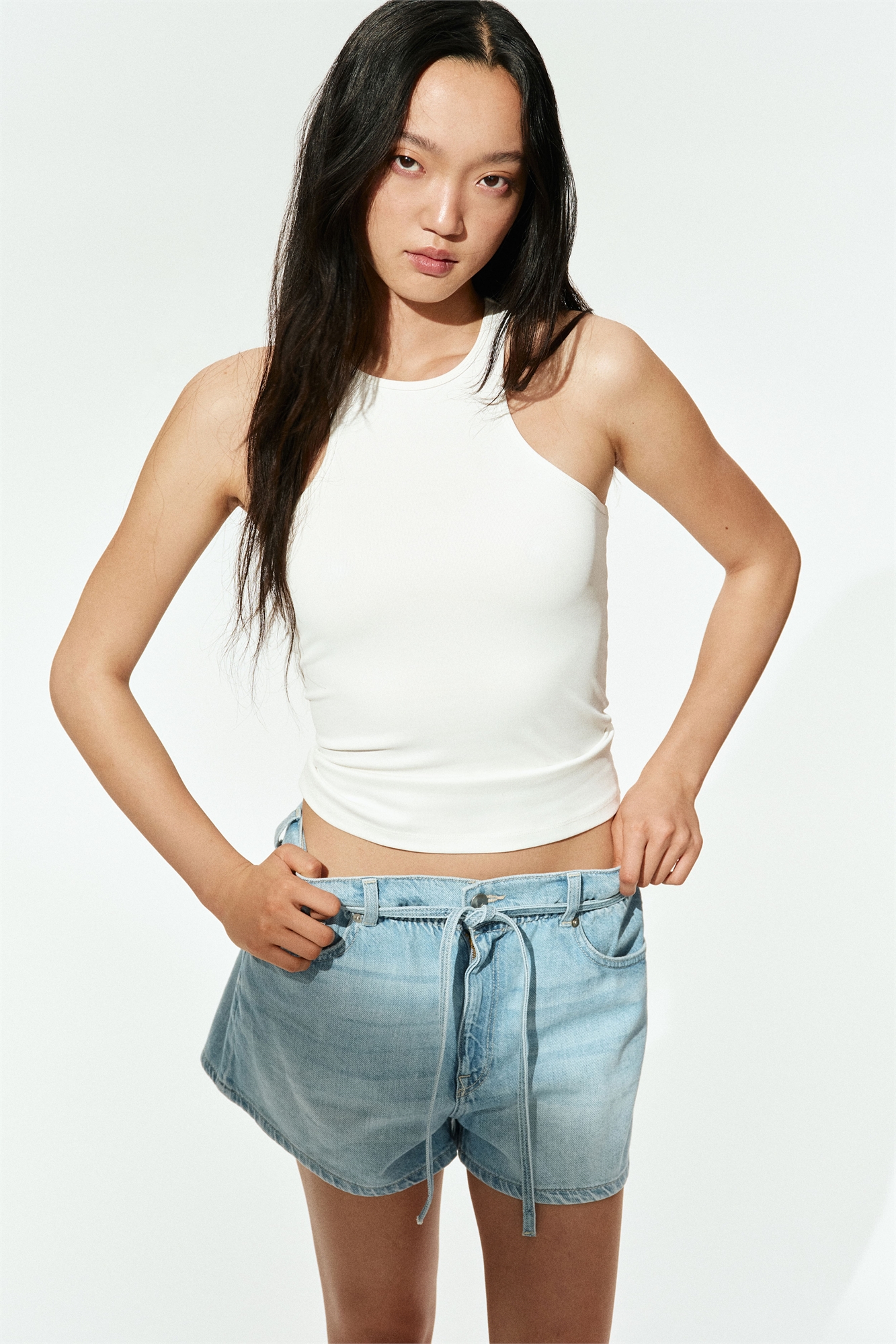 Джинсовые шорты с высоким поясом из бумажного пакета