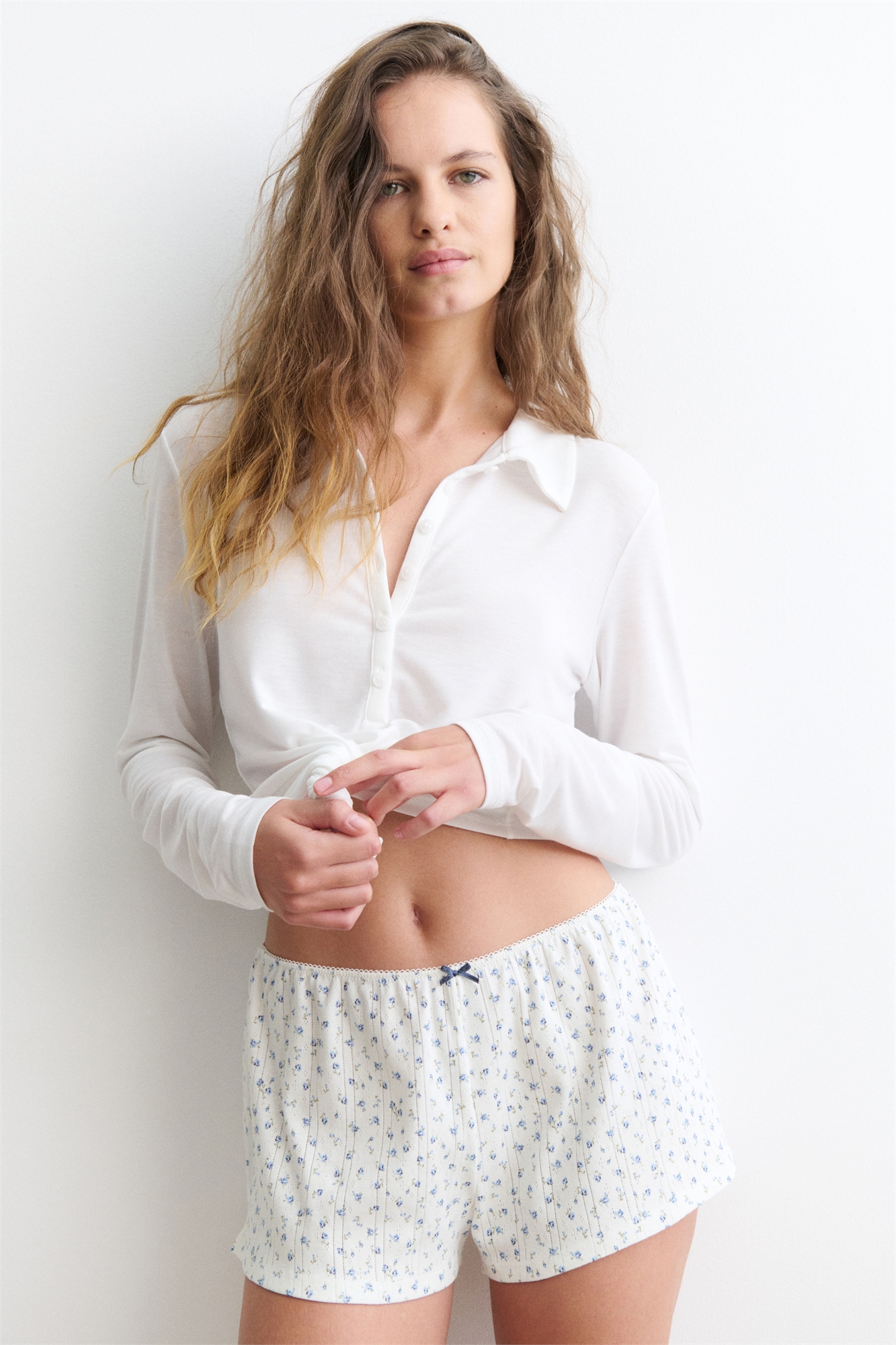 Пижамные шорты из мягкого трикотажа с эластичной талией с отделкой пико. Одна пара в рубчик и одна пара из пуантельевого трикотажа.