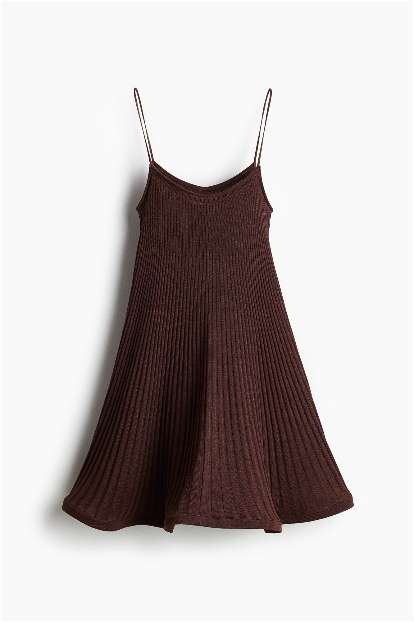 Длинный топ на бретелях из смеси шелка и вискозы тутового цвета. Бретели-спагетти, прямой вырез, окантовка горловины и проймы. Расклешенный силуэт с укрепленным подолом для придания дополнительного объема.
