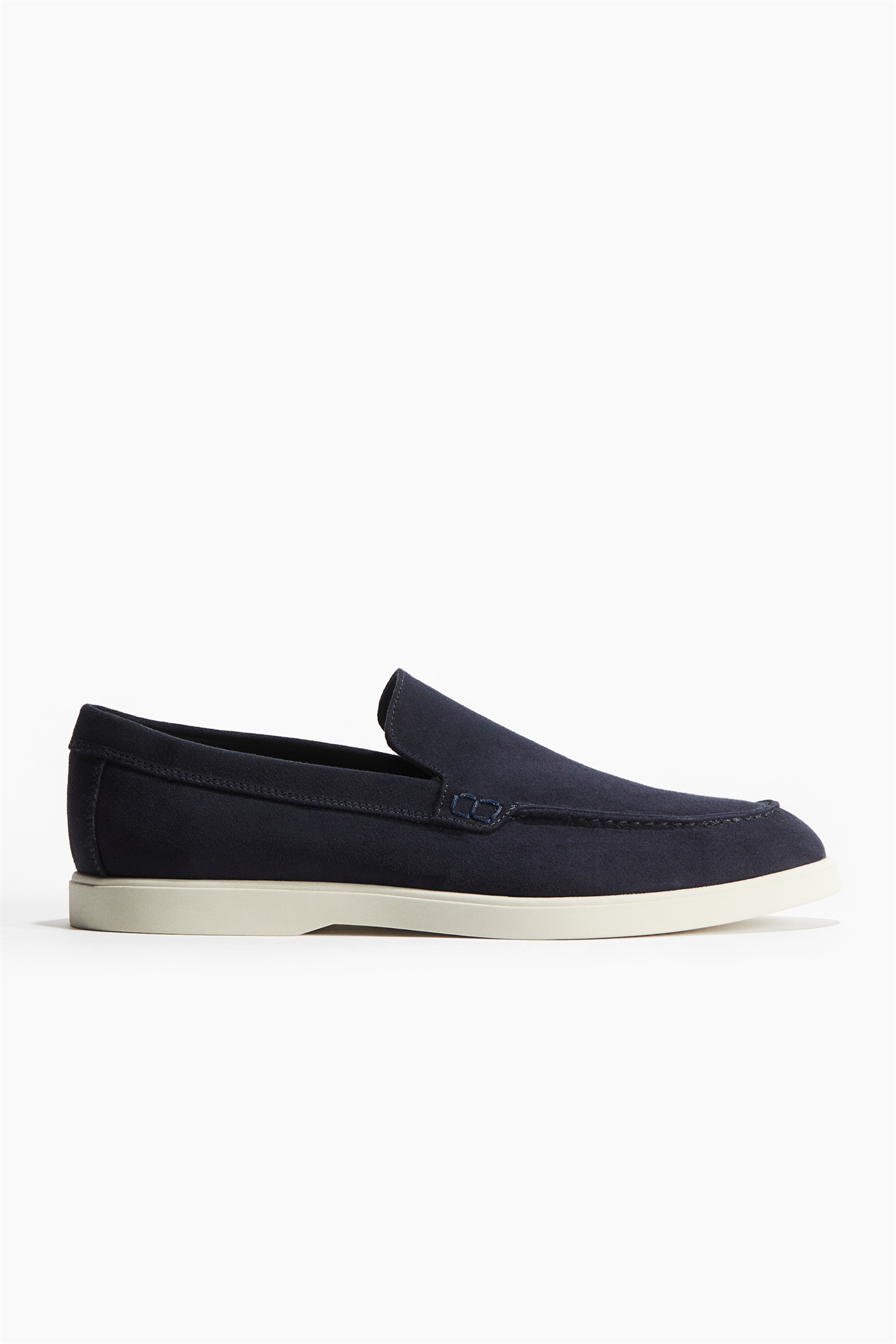 Лоферы с мокасиновым швом спереди. Подкладка и стелька из хлопкового холста, резиновая подошва с узором.