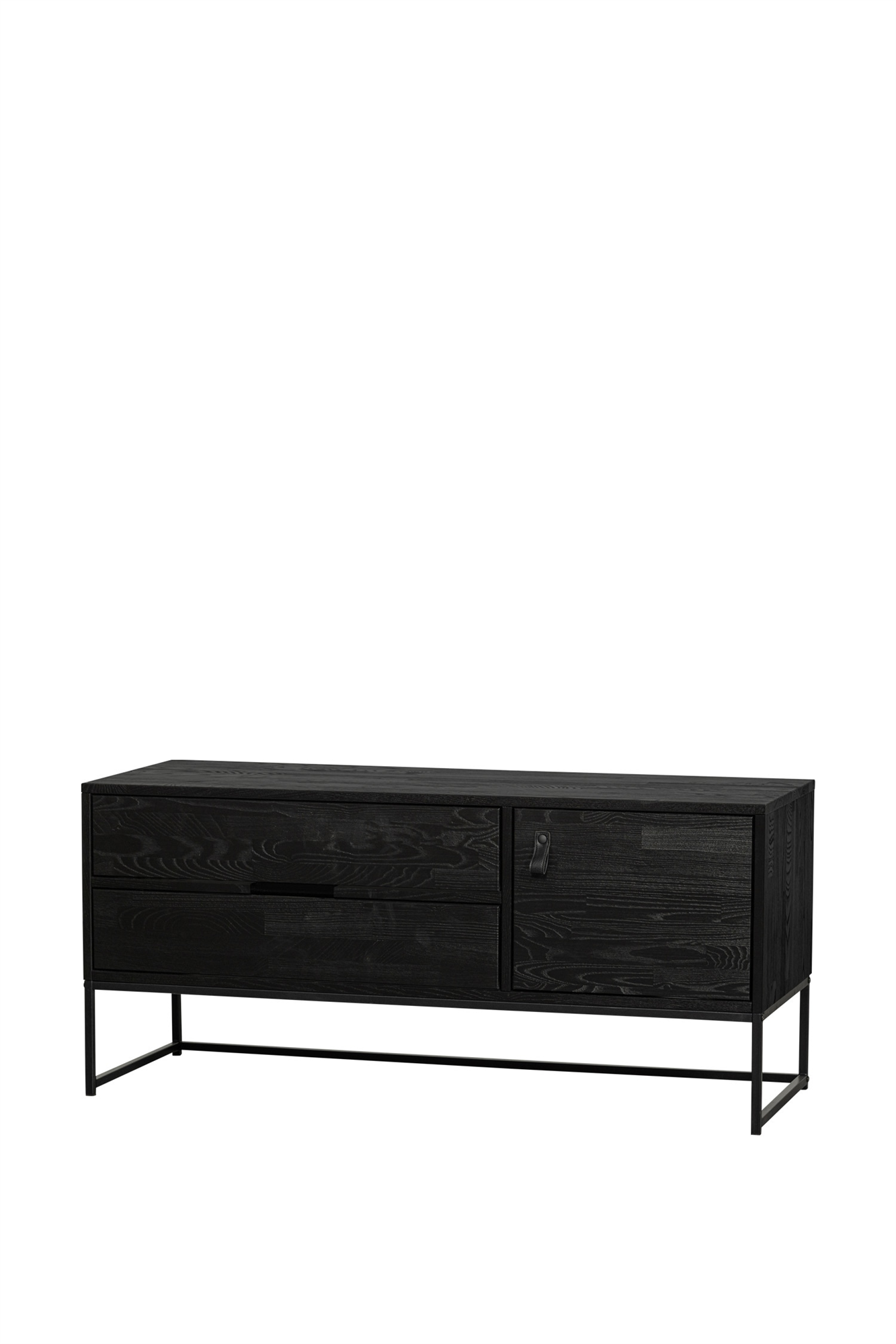 Тумба для телевизора Silas из коллекции Select от WOOOD сочетает в себе современный дизайн и функциональную элегантность. Она изготовлена из сертифицированной FSC древесины сосны, отшлифована и покрыта лаком цвета пыли, и имеет прочное основание из черного металла. Сосновая древесина известна своей гладкой поверхностью, а также характерными зернами, которые придают ей живой вид. Размеры тумбы под телевизор: высота 55 см, ширина 120 см, глубина 44 см. Ящики имеют ширину 61 см и высоту 13 см. С правой стороны находится отделение с полкой и дверцей (высота 37 см, ширина 50,1 см) с кожаной ручкой. Шкаф выдерживает до 60 кг и весит 24 кг.