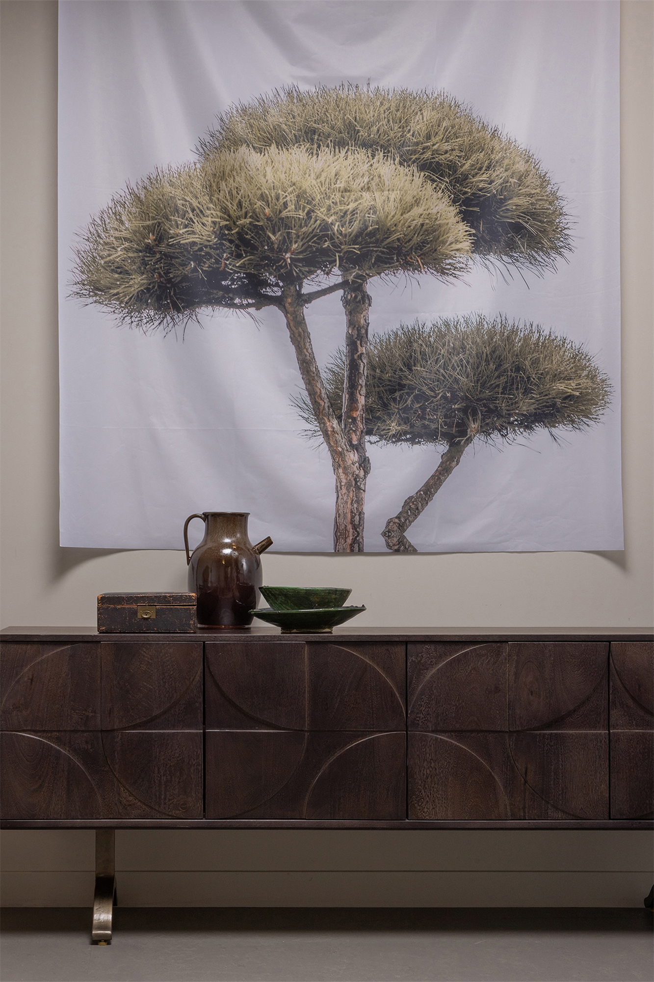Этот сервант из коллекции BePureHome впечатляет своей теплой ореховой отделкой и игривым каркасом основания, который обеспечивает устойчивость и воздушность конструкции. 3D-узоры на дверцах придают серванту особый штрих. Изготовленный из древесины манго, сервант отличается прочностью и долговечностью. Древесина отличается теплым золотисто-коричневым цветом, видимой текстурой и индивидуальными цветовыми нюансами. Высота шкафа составляет 70 см, ширина - 180 см, глубина - 40 см. Он имеет четыре дверцы с магнитными защелками и два отделения (высотой 19,5 см, шириной 87 см и глубиной 34 см), каждое из которых имеет два отверстия для кабелей. Высота ножек составляет 27 см, максимальная нагрузка на столешницу - 35 кг, а каждая полка выдерживает до 15 кг.