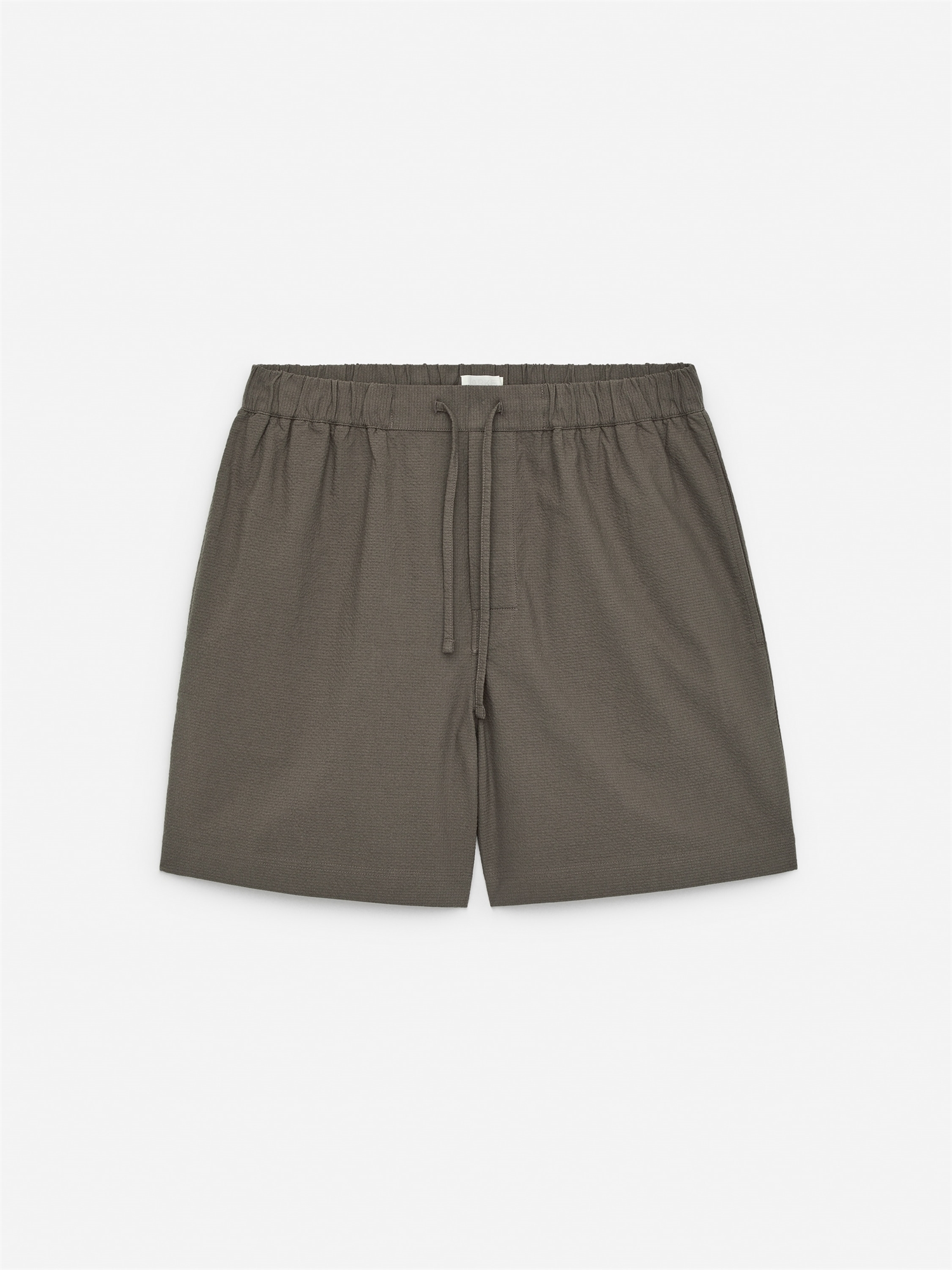 Шорты из эластичной ткани сирсакер. Эластичный пояс с утягивающим шнурком, карманы в боковых швах и накладной карман сзади. Обычный крой.