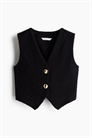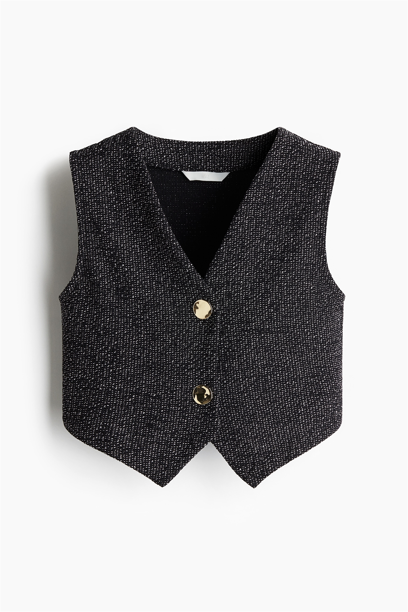 Приталенный жилет из джерси букле с V-образным вырезом и металлическими пуговицами спереди.