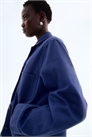 Рубашка из хлопковой саржи с воротником и потайными пуговицами спереди. Иг сзади и длинные объемные рукава со складками, рукавной планкой и манжетами на пуговицах. Накладные карманы спереди и прямой подол с разрезом с каждой стороны. Без подкладки.