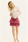Мини-юбка свободного покроя из мягкого хлопкового джерси с двухслойным поясом. Собранный шов на бедрах и ярусы с закатанными краями для придания дополнительного объема.