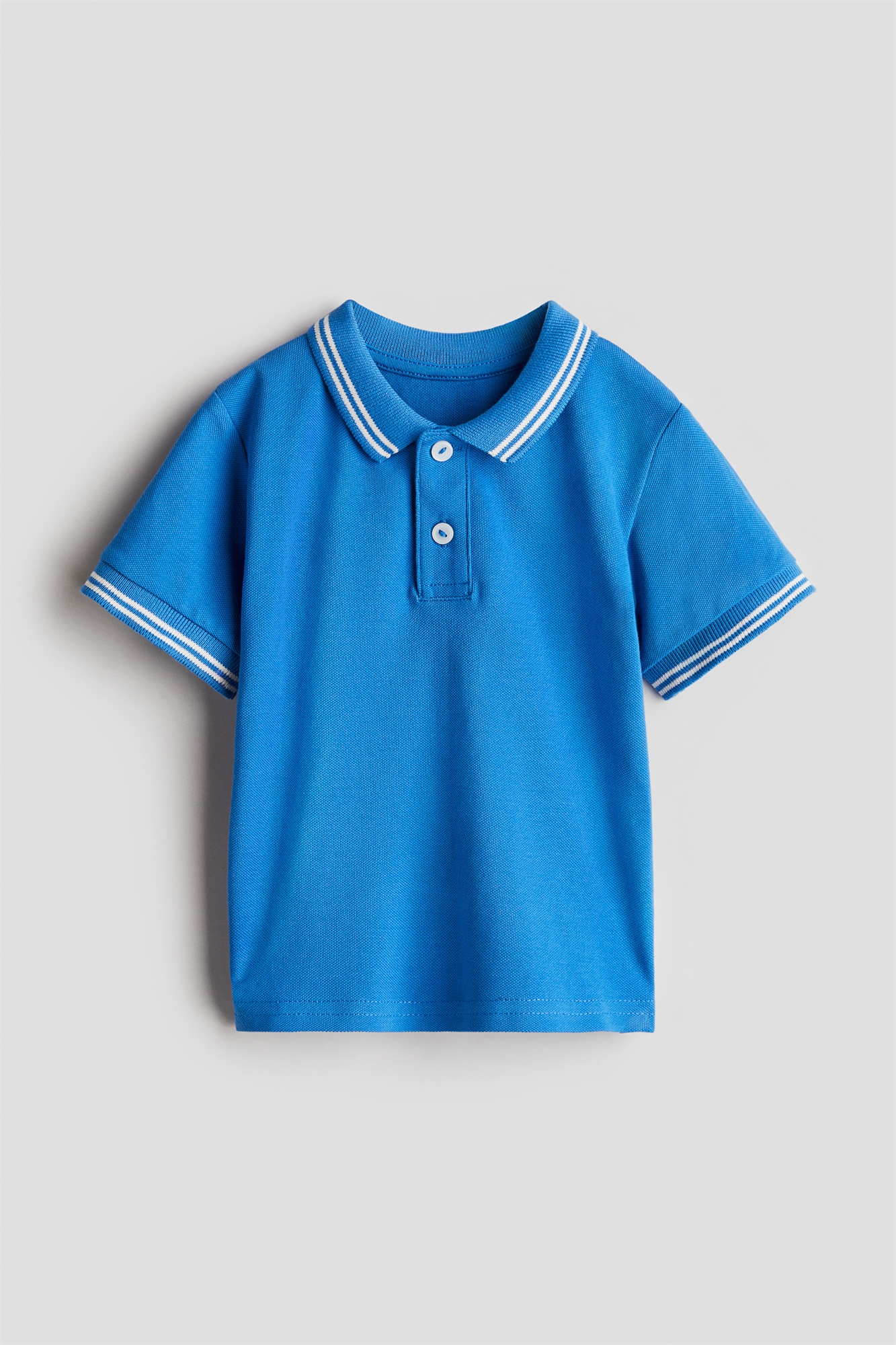 Рубашка-поло из мягкого хлопка пике с ребристым воротником, застежкой на пуговицы, манжетами в рубчик и разрезами по бокам подола.