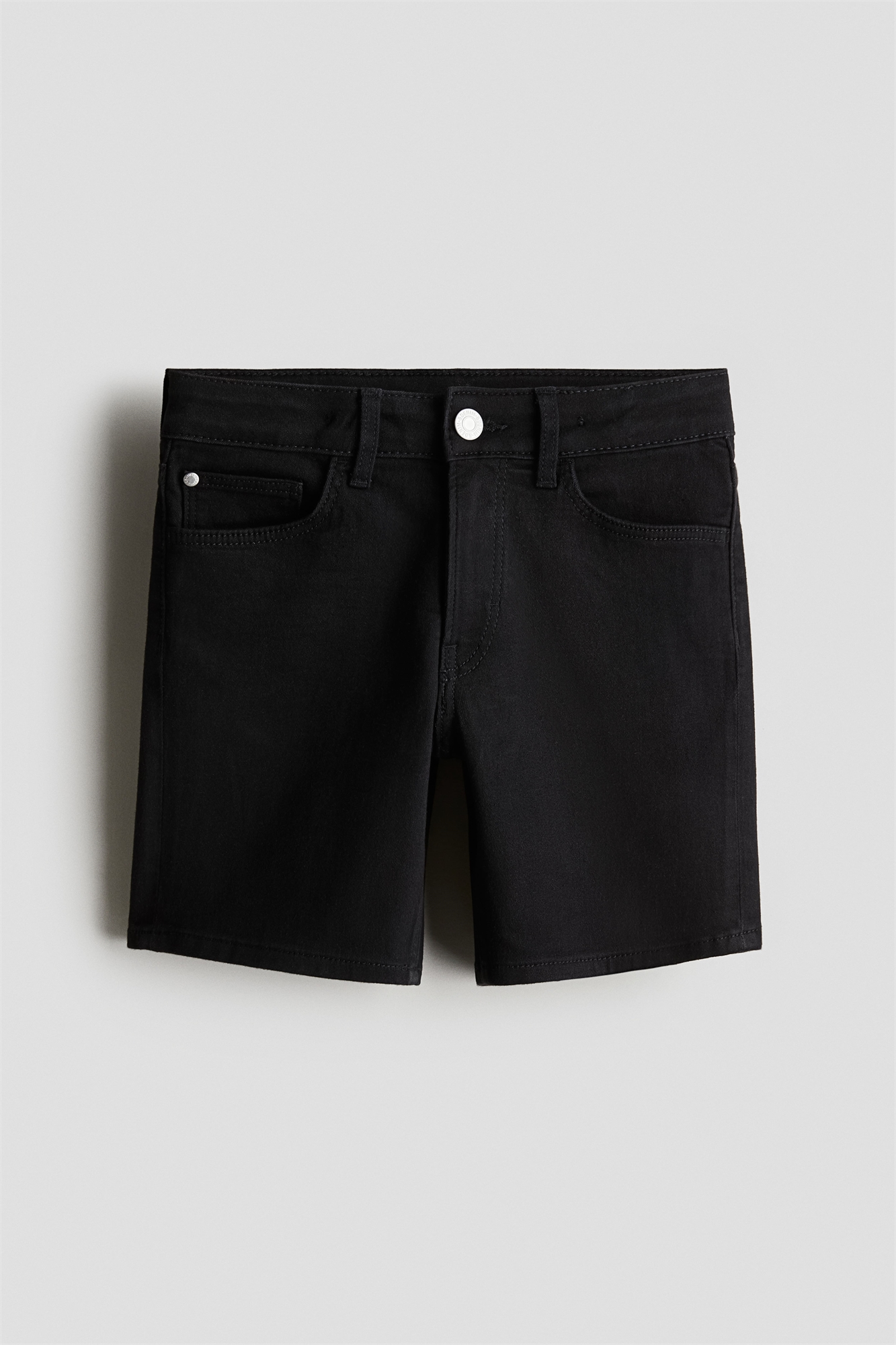 Шорты с 5 карманами из моющегося денима с регулируемой резинкой на талии и ширинкой на молнии с пуговицей.