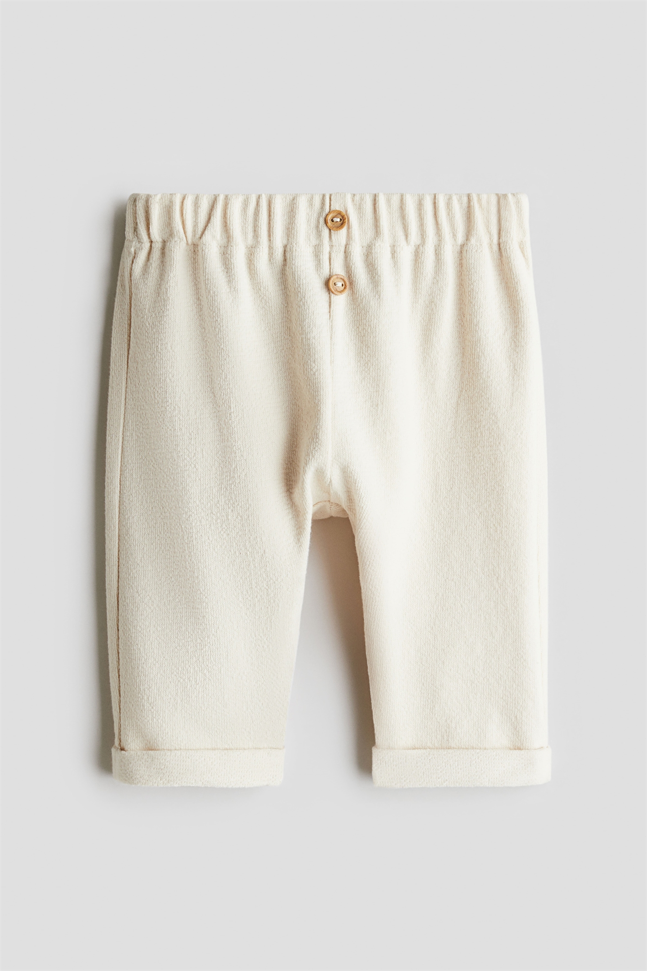 Брюки из мягкого трикотажа с декоративными пуговицами спереди. Регулируемая эластичная талия и вшитые оборочки на подоле.