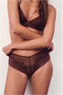 Трусы из вышитой сетки со средней, V-образной талией, ластовицей и средней посадкой сзади. Обрезные края по проймам ног.