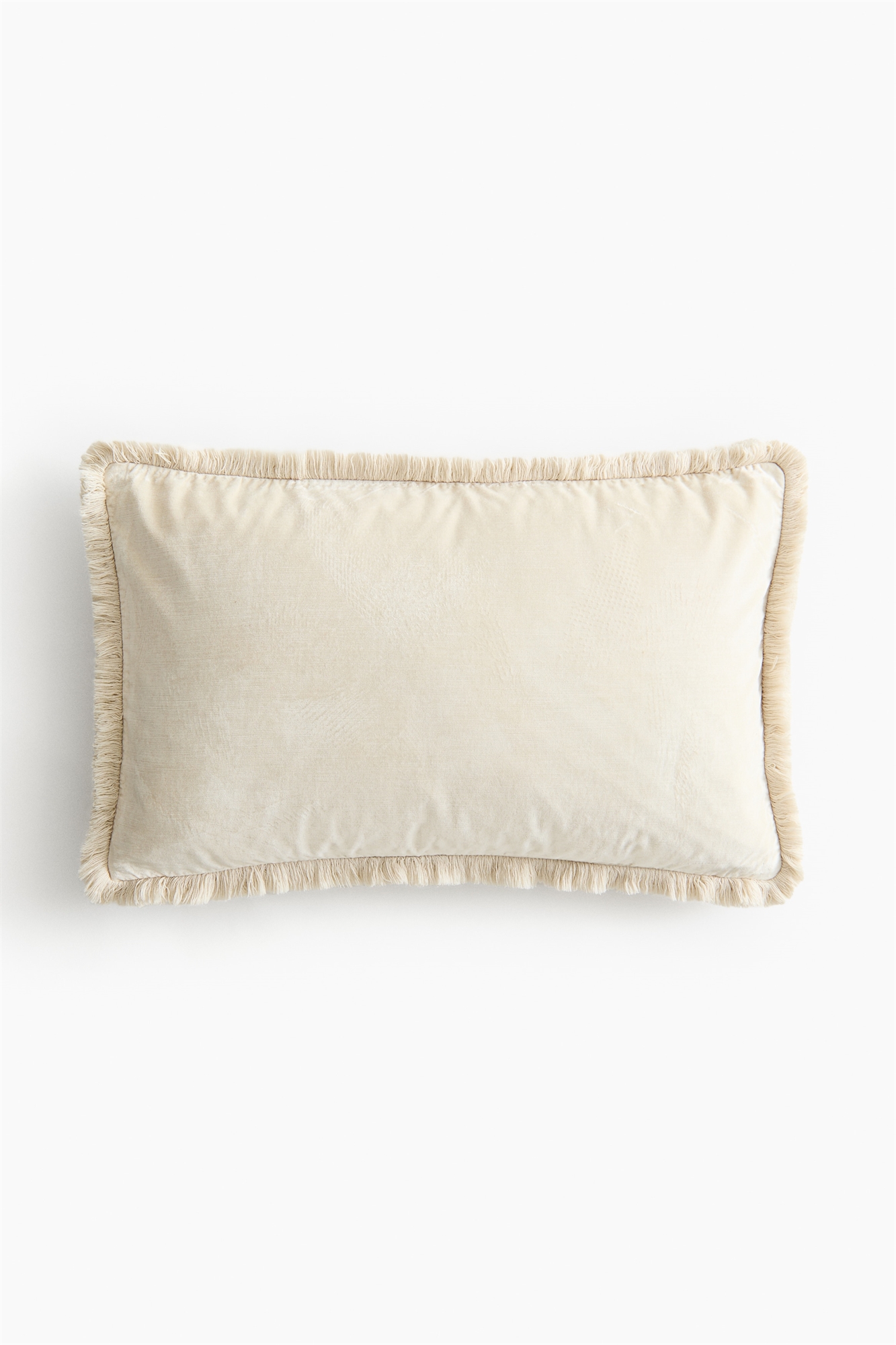 Бархатный чехол для подушки с бахромой по всем четырем сторонам и потайной застежкой-молнией на спинке.